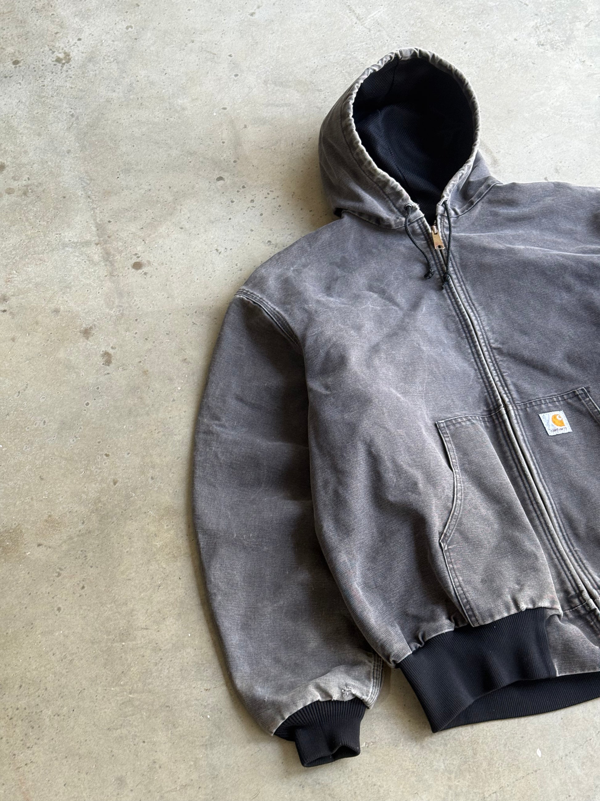 Vintage Faded Carcoal Black Carhartt Hooded Jacket - XL
